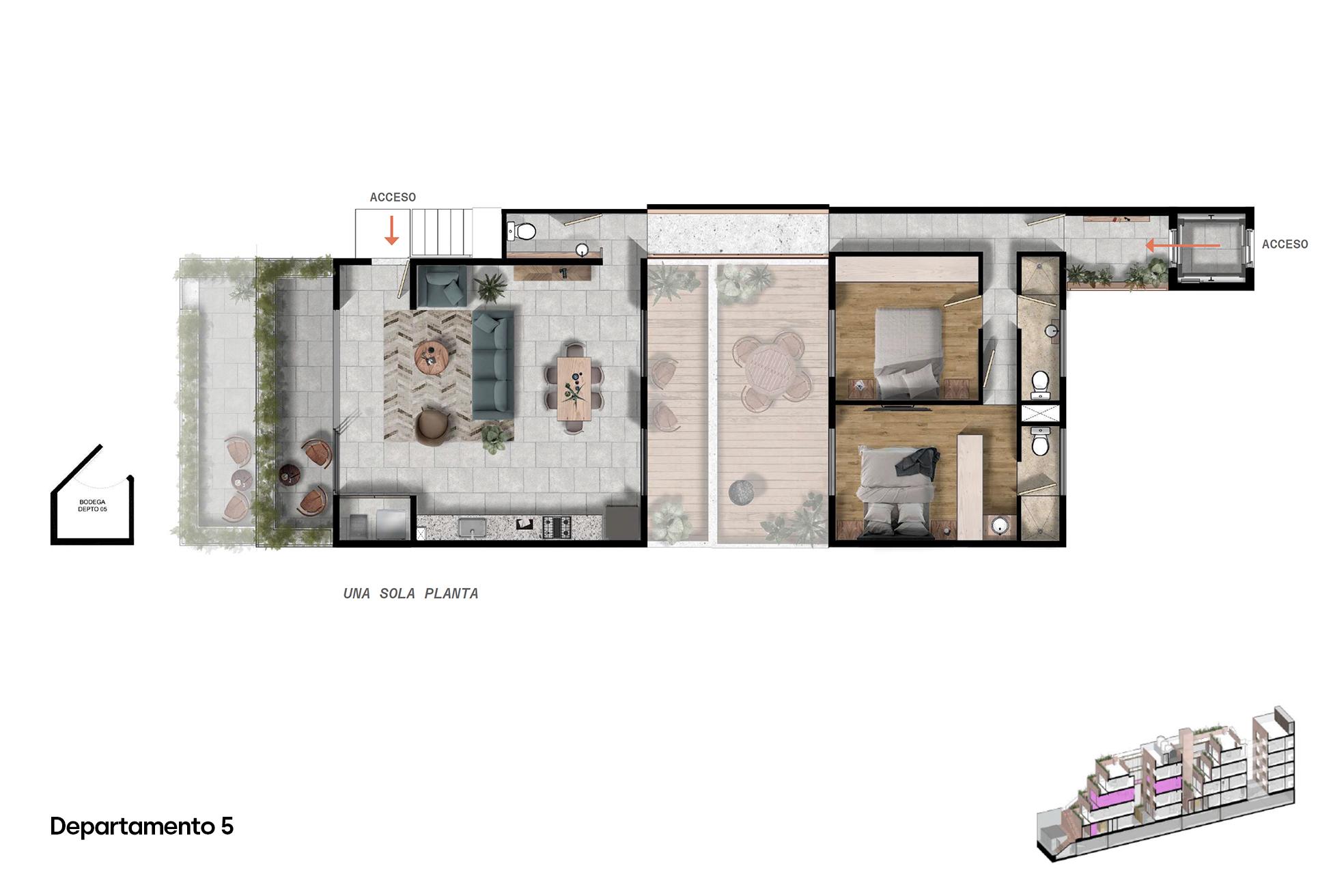 - Elevador con acceso controlado a cada departamento